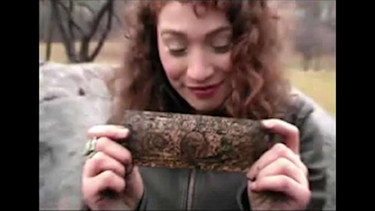 In this candid and humorous moment, Regina Spektor is seen digging up a time capsule she buried years ago, uncovering items like her tassel, a dollar she wrote on, and possibly a lock of her hair. She reflects on how melodramatic her younger self likely was, laughing about the private messages on the dollar. Though she accidentally breaks some glass in the process, Regina is excited to have found her buried items.